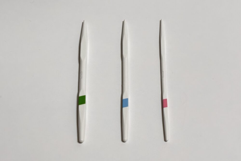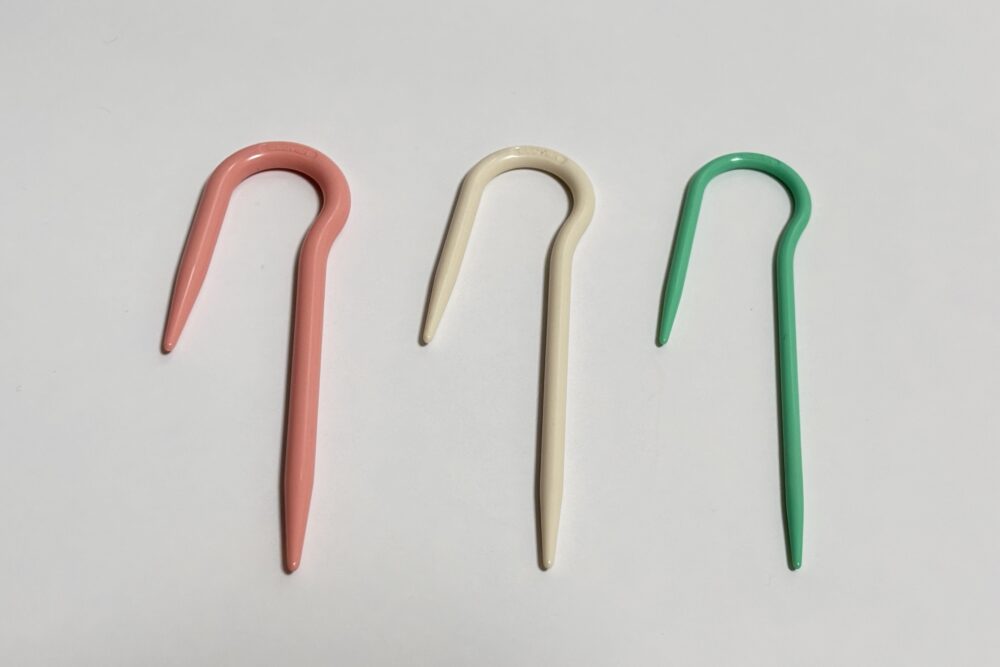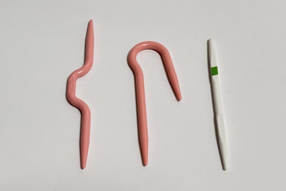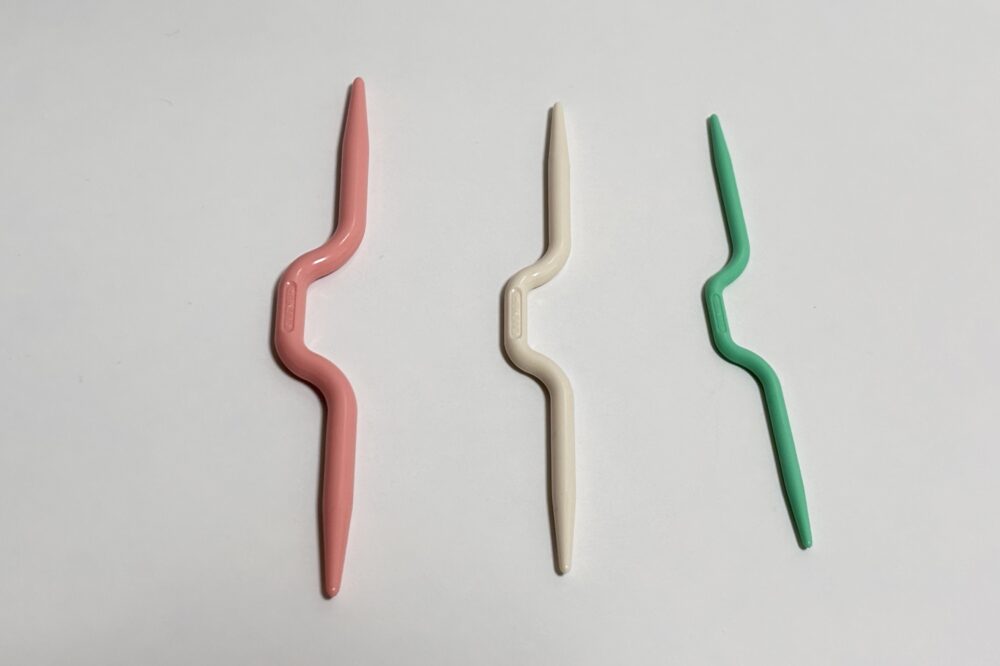 今回はこちらの形状が異なる3種類のなわ編み用の針を比較してみました。
